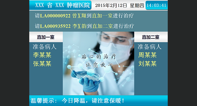 預約叫號系統(tǒng)是用于放療科診室、定位室、治療室的便捷排程、智能呼叫和分診排隊管理系統(tǒng)