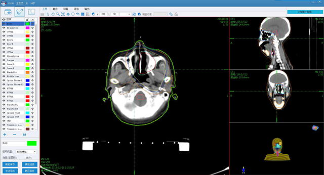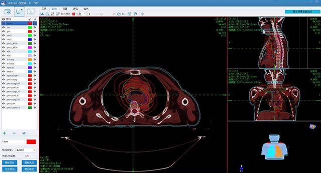 兼容DICOM3標(biāo)準(zhǔn),支持結(jié)構(gòu)輪廓三維查看,支持線條模式和色塊模式,可進(jìn)行靶區(qū)切換